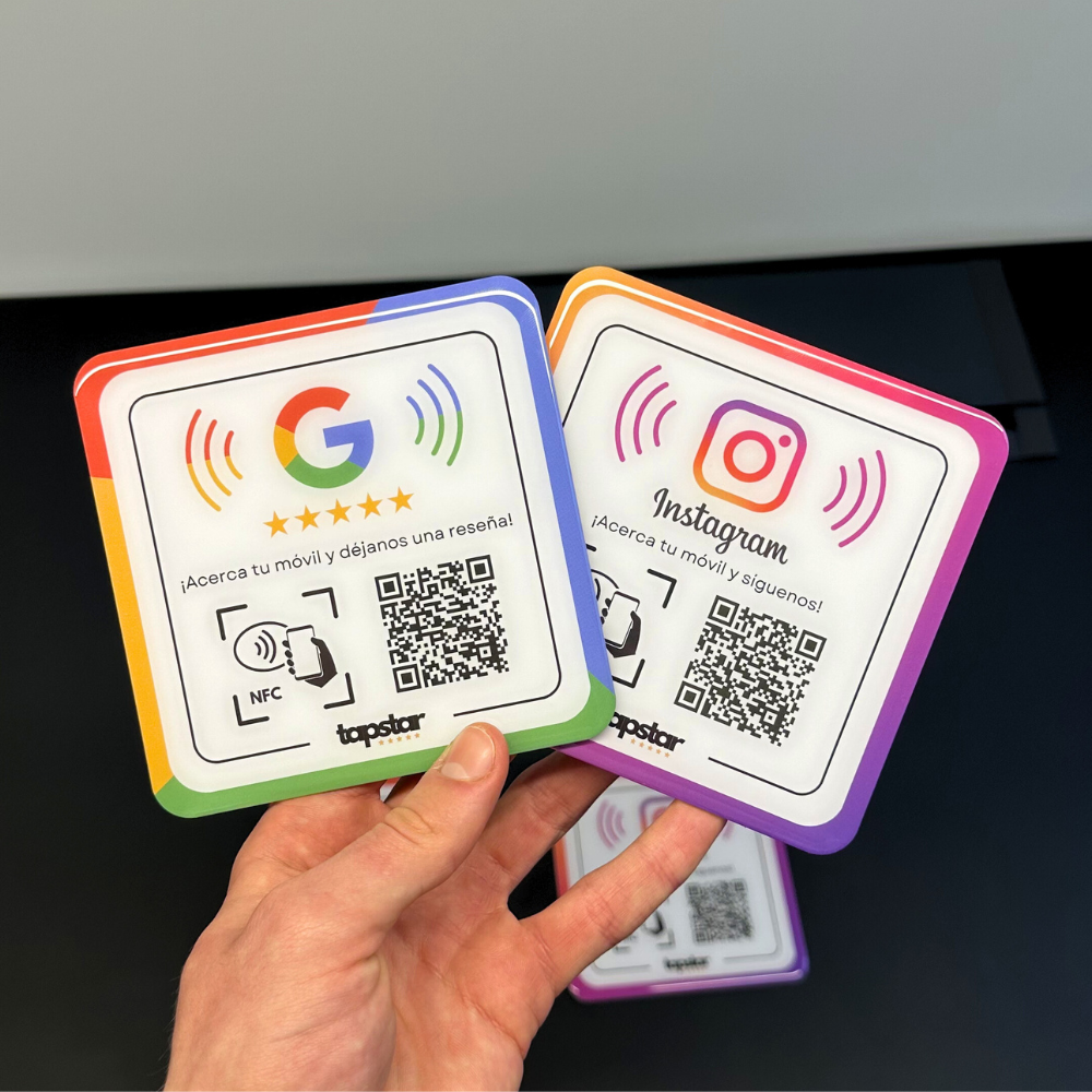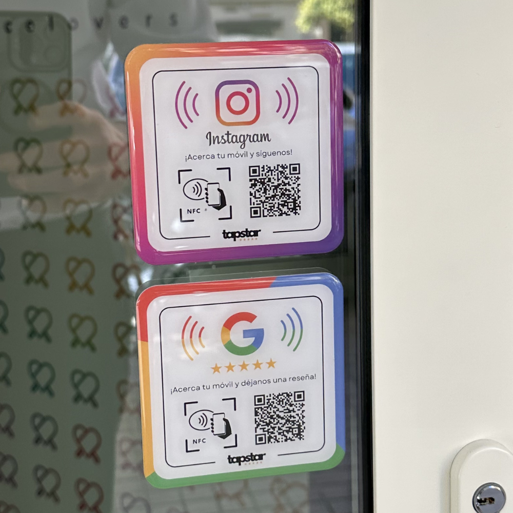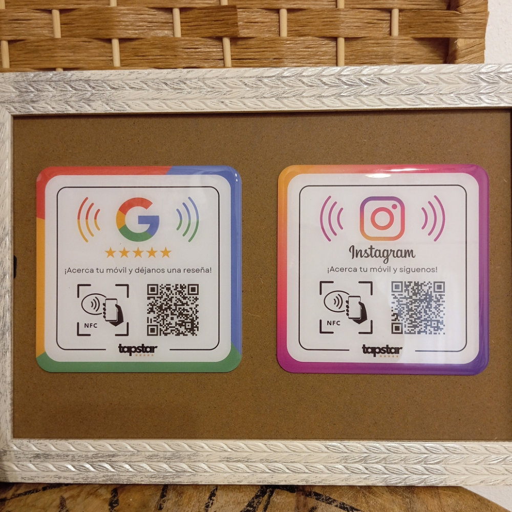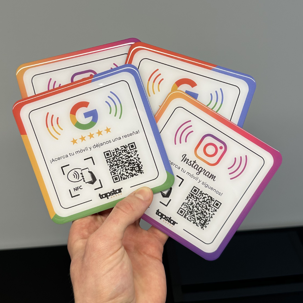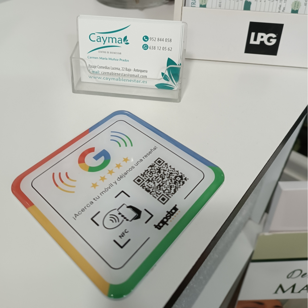 Significa tecnología sin contacto. Los dispositivos Tapstar llevan incorporado un Chip NFC que detecta el teléfono del cliente y le lleva directamente a ponerte una reseña en Google.